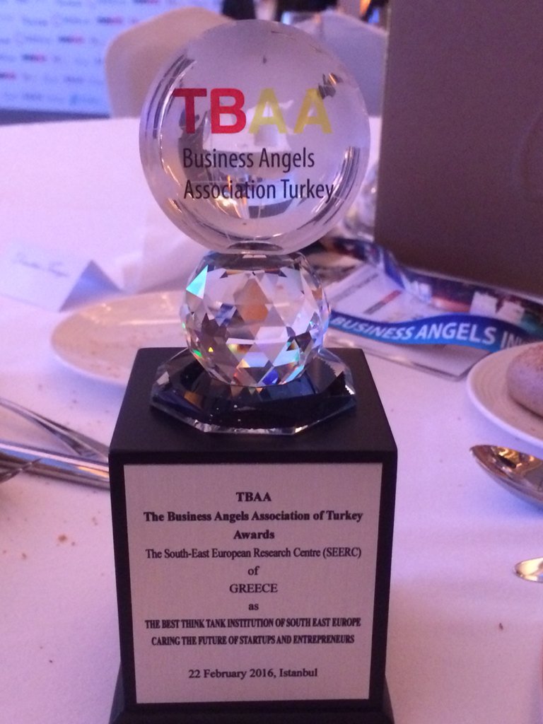 Once again we prove our mission and impact in South East Europe ! SEERC Received the Best Think-Tank in South East Europe Award at the World Business Angels Investment Forum (21-23 February, 2016, Istanbul, Turkey) for building entrepreneurs and supporting startups. From a variety of highly reputed names, we are pleased to have received this award that will motivate us to pursue even further our mission !
